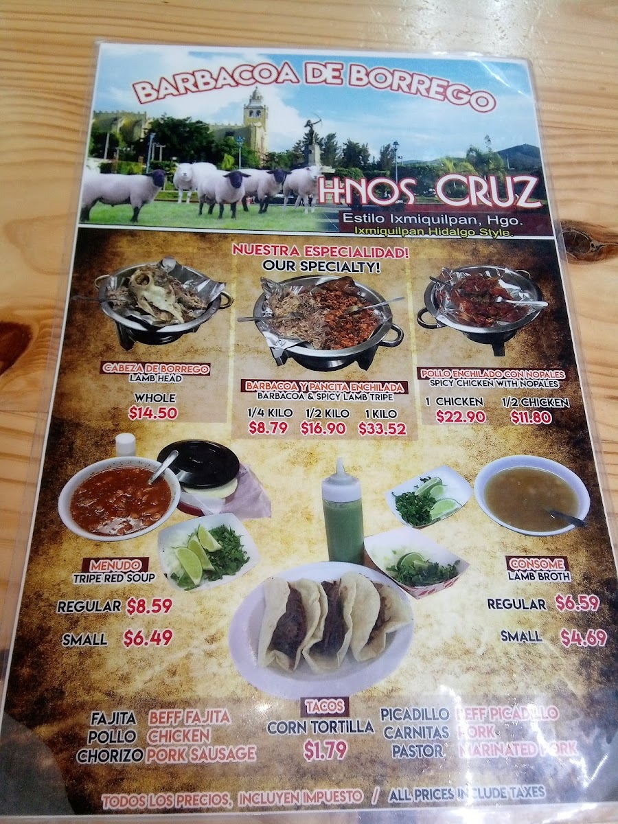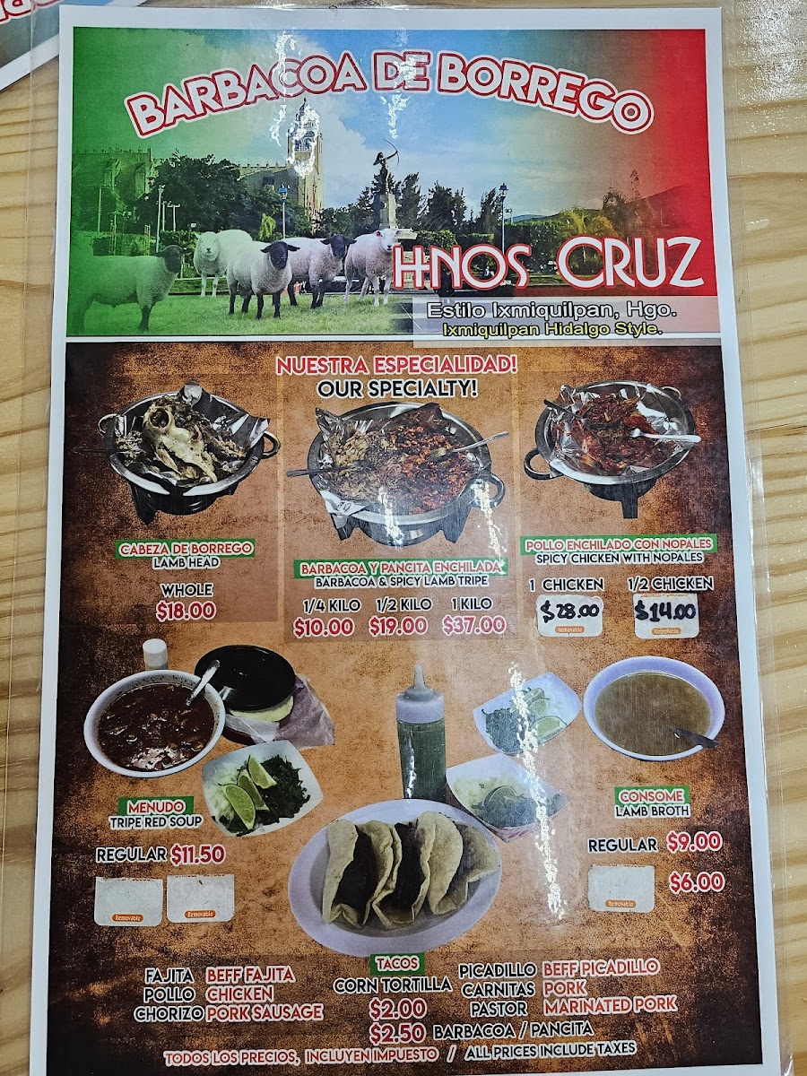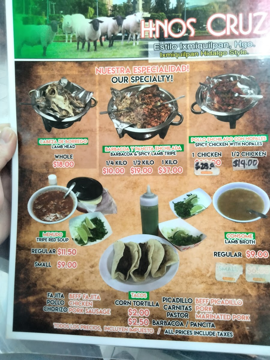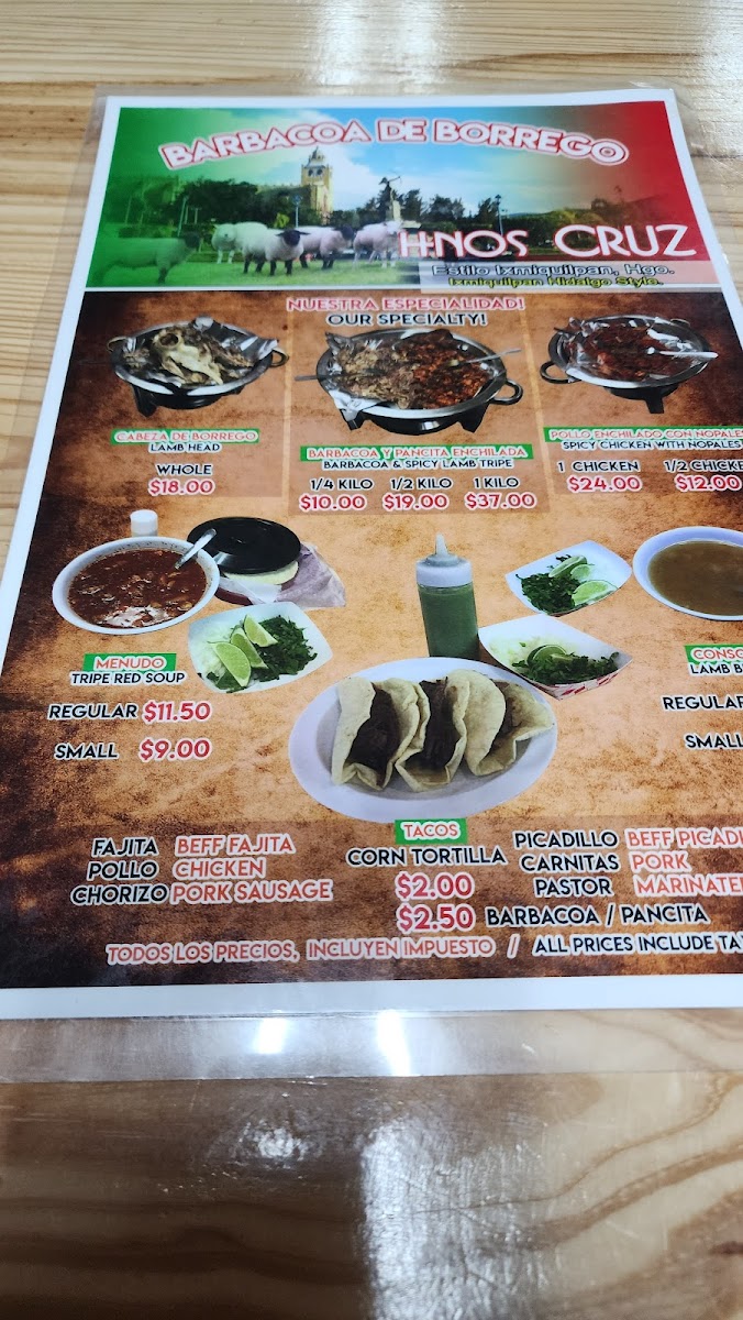 Hermanos Cruz Barbacoa Estilo Ixmiquilpan Hgo. Menu