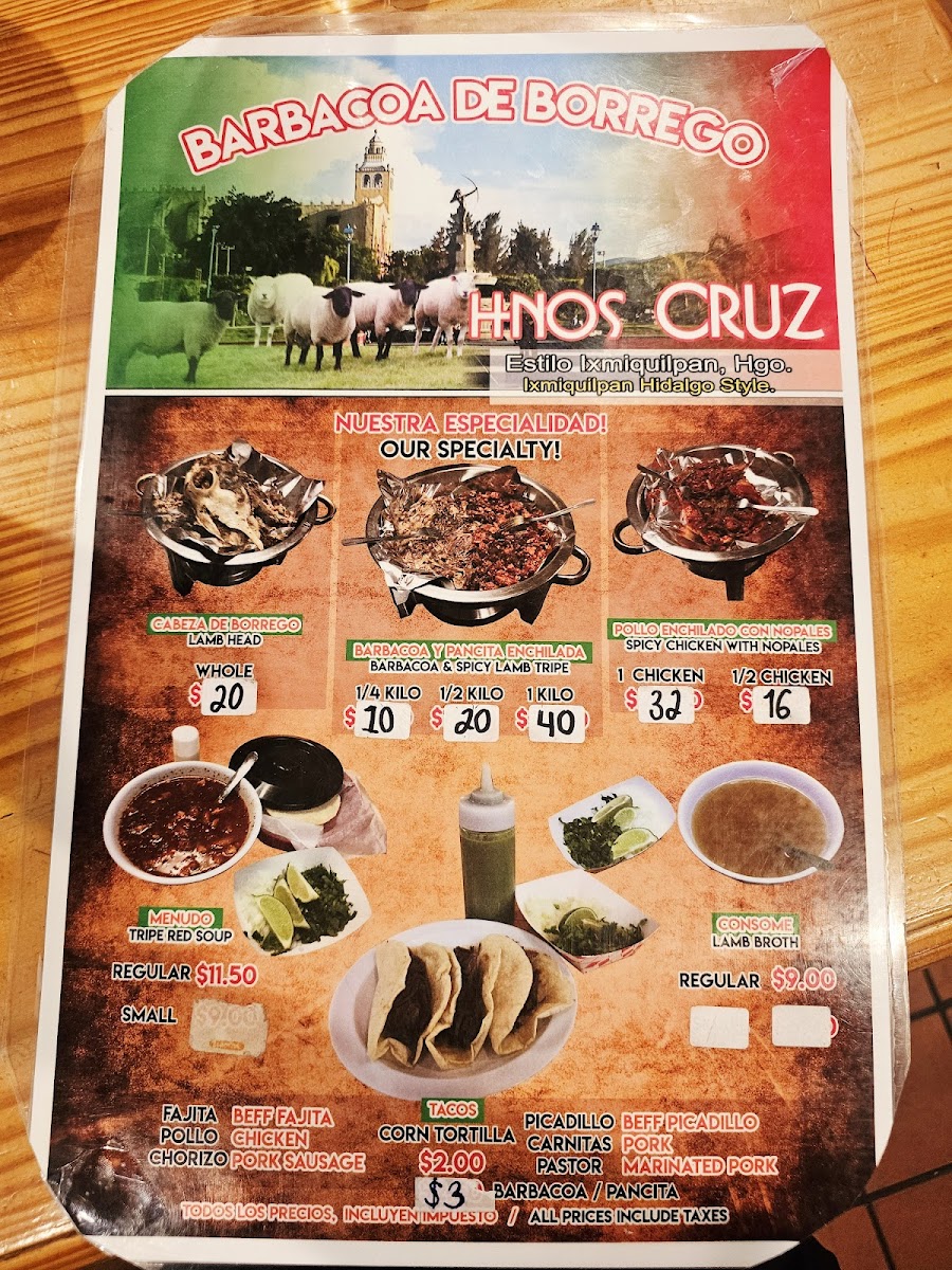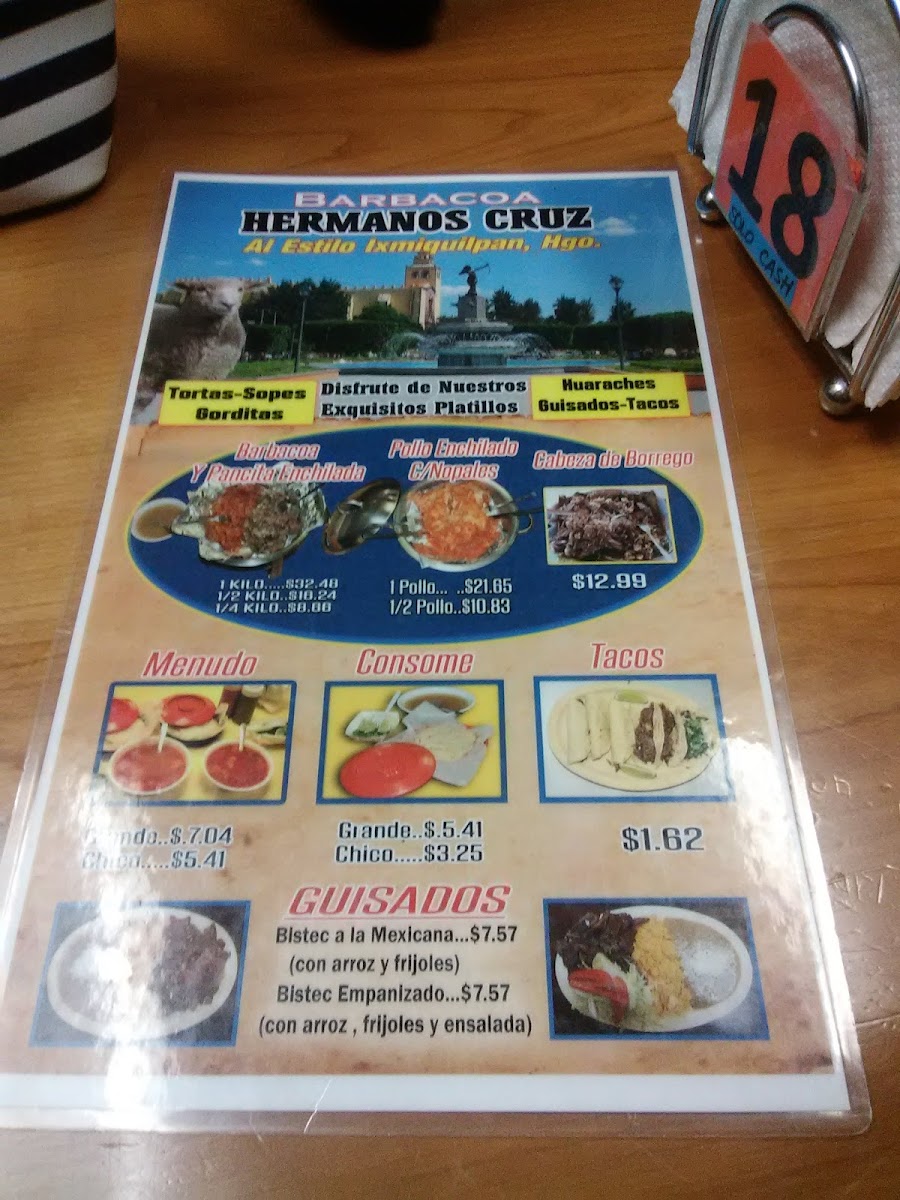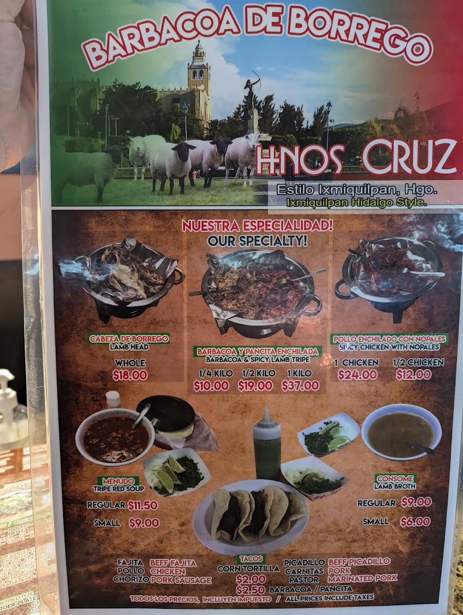 Hermanos Cruz Barbacoa Estilo Ixmiquilpan Hgo. Menu